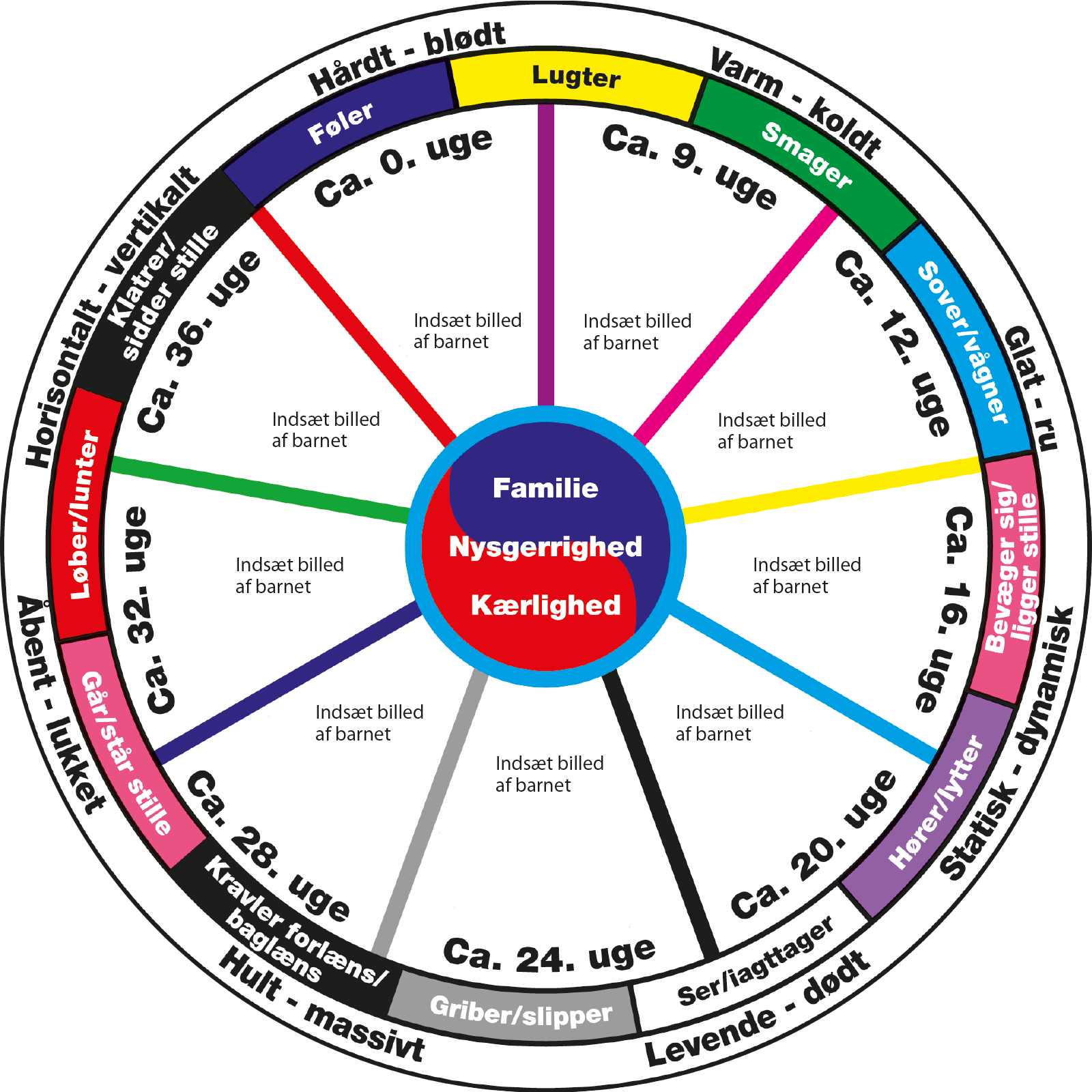 Fra ca. 5. måned sker der et stort spring i udviklingen. Barnet begynder at kunne ”give og give slip” – at tage og give.